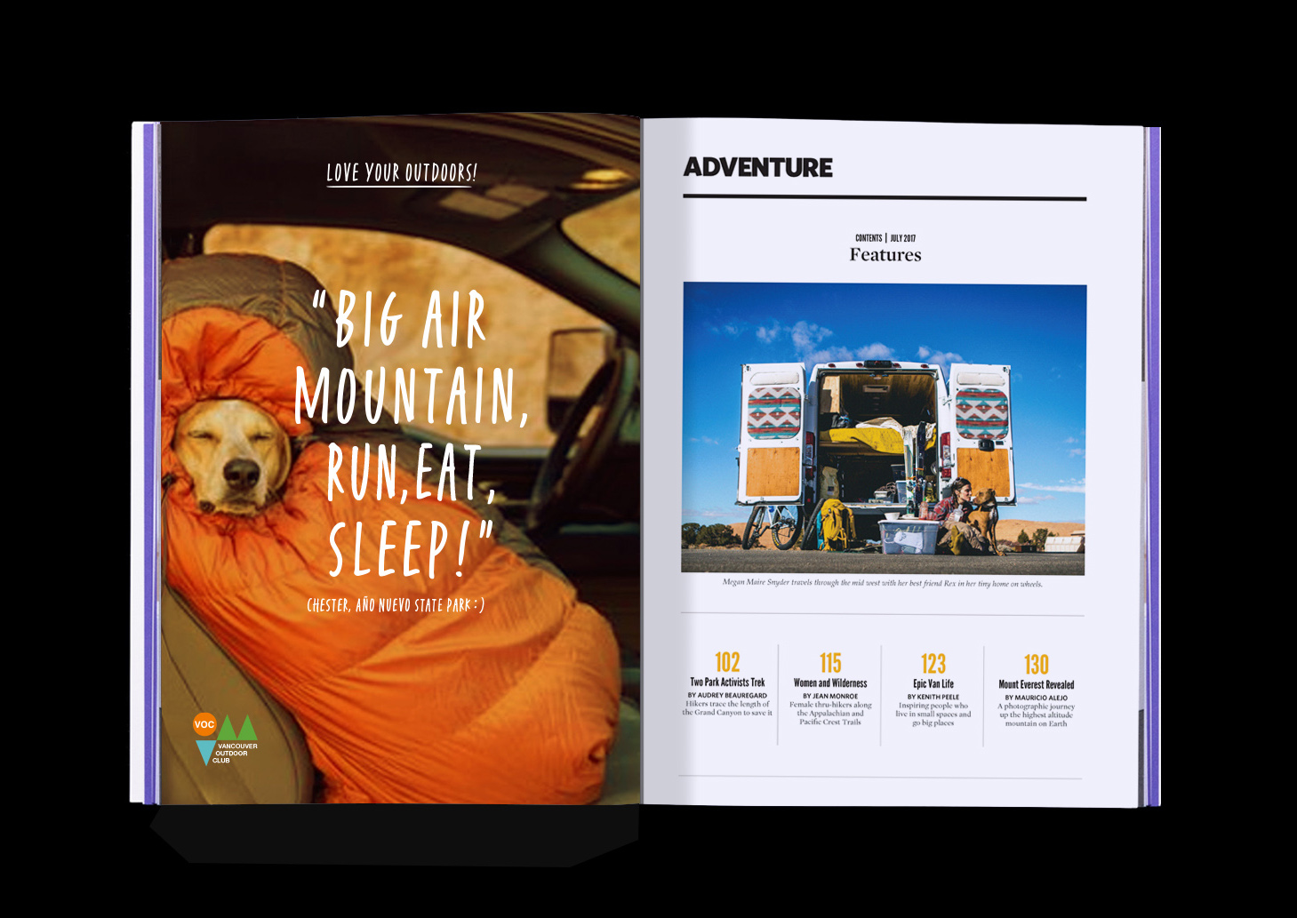 When the VOC asked me to help, I jumped at the chance. (Payment? None. Except for pure joy!) I crafted a bold, fun visual identity and event promos that matched the club’s wild energy. Posters, announcements, and playful graphics turned into rallying cries for mischief in the mountains. Serious fun was had. And supporting a club that gets 3,000+ students outside every year – at zero cost – felt like the best kind of design adventure.